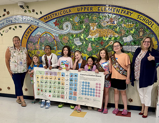 Girl Scout Troop 62222 of Merrimack, NH, donated two playground communication banners to local schools using their cookie money. They learned about communication and inclusion this year. They had local teachers show them sign language. They learned from a parent who has a child with autism how the communication system works. They also learned from a high school student who uses a communication device how electronic communication devices work. The girls have a goal of making the community more inclusive for all!