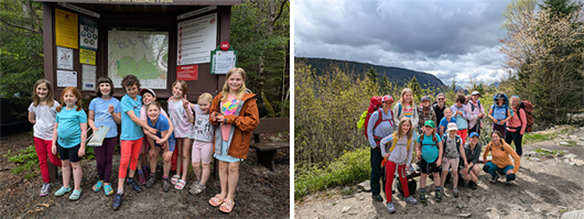 Brownies and Juniors went backpacking for the first time May 17-18. They hiked into Zealand Falls Hut Saturday and spent the afternoon exploring before sleeping overnight in the hut. The girls carried all of their food and gear 2.8 miles in. They enjoyed watching a spectacular mountain thunderstorm from the safety and shelter of the hut Saturday night and had a beautiful hike out followed by Super Secret Ice Cream on the way home. The nine girls and five adults who participated had a great time and are already hoping to do this again at another hut in October.
