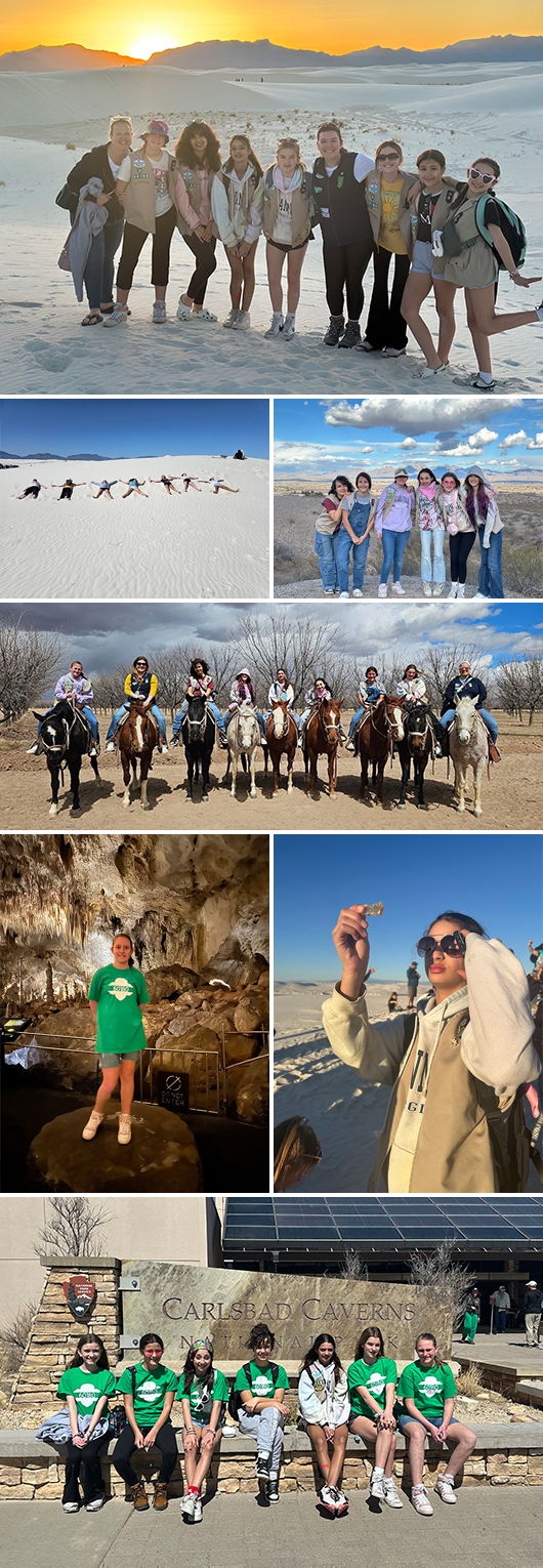 Troop 60180 of Loudon, NH, sold lots of Girl Scout Cookies to be able to travel to New Mexico in March. The troop planned the trip, visiting White Sands National Park and Carlsbad Caverns, going horseback riding, and making decisions about what to do along the way.
